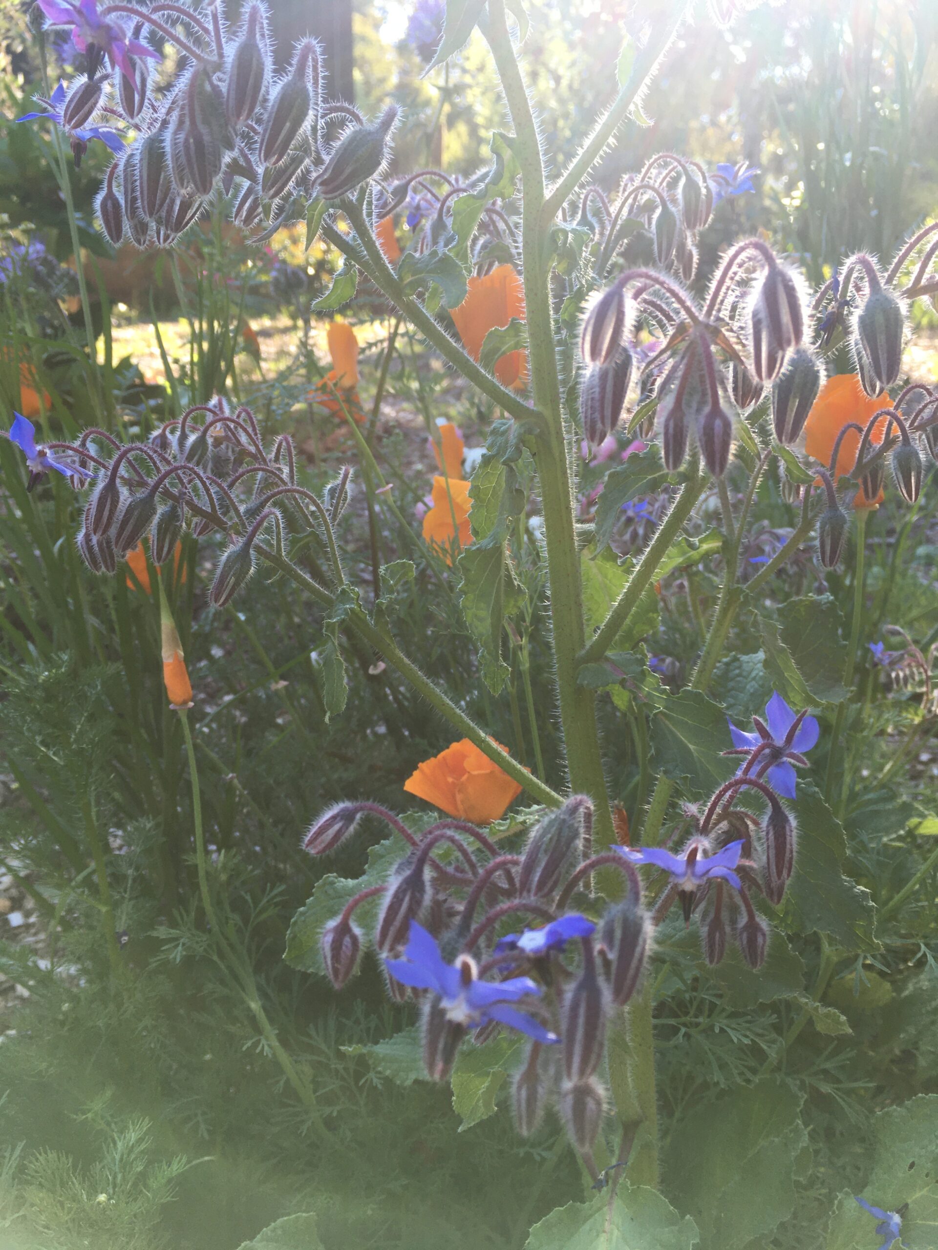 Borage (Borago officinalis) with its blue, starry flowers and hairy foliage is a lovely addition to any garden or herb patch. Young leaves can be used in soups and stews or mixed into salads to add a crisp, cucumber flavour. The flowers are edible as well and make a great garnish for salads or dips.