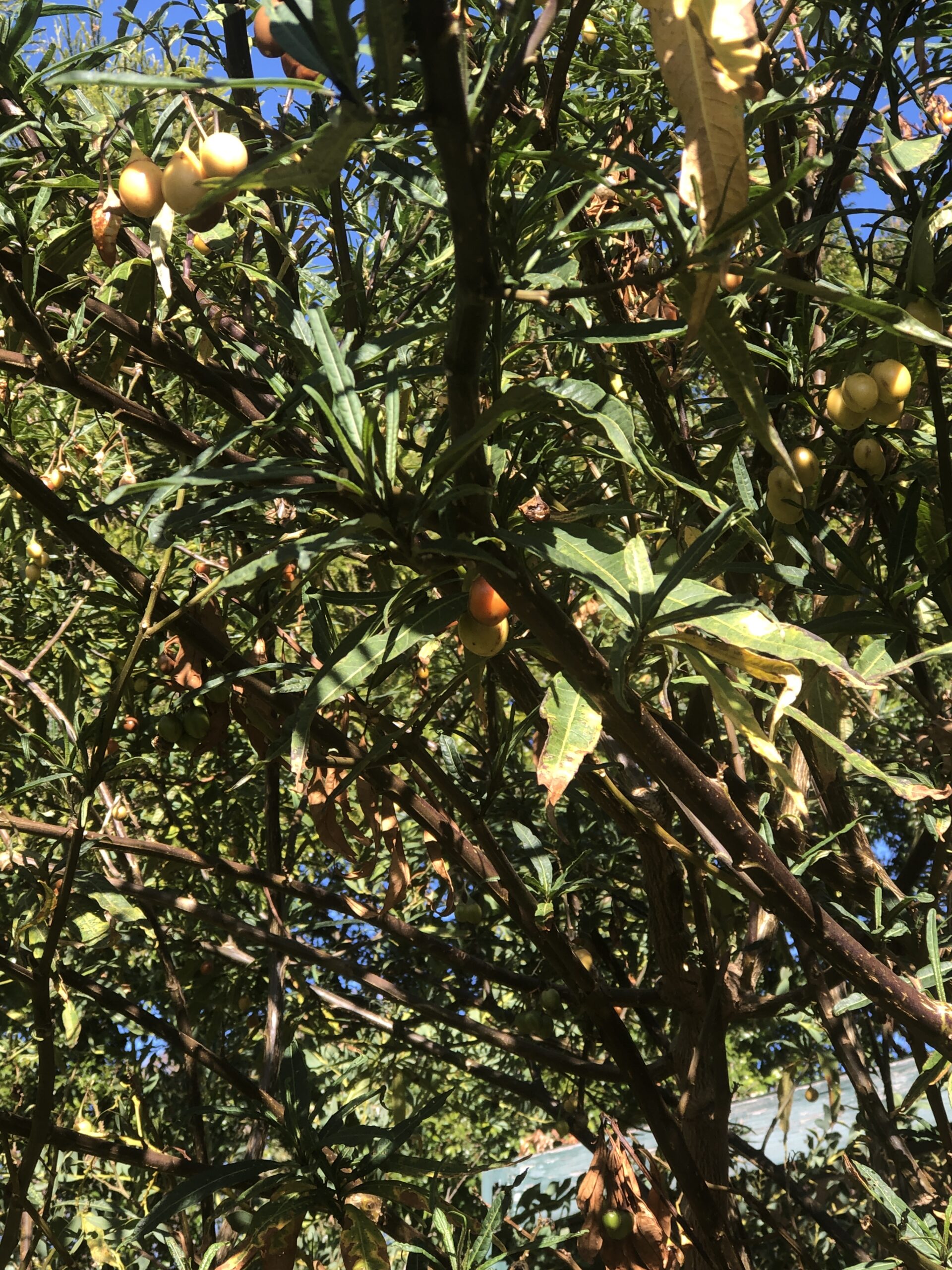 Large Tree with edible fruit when ripe….eat only when red!
