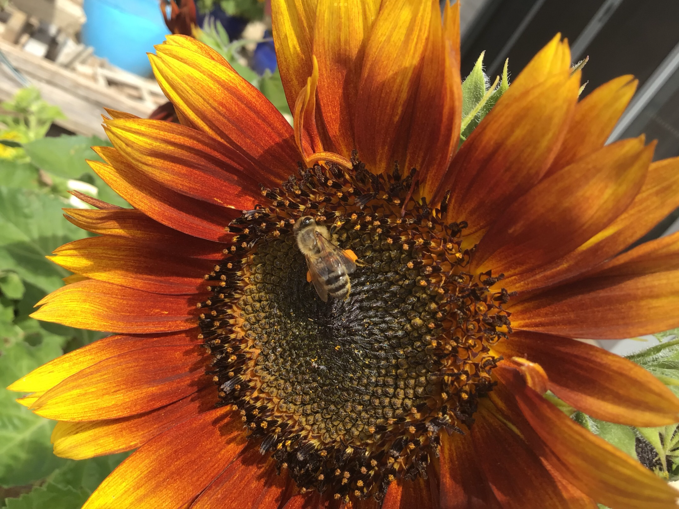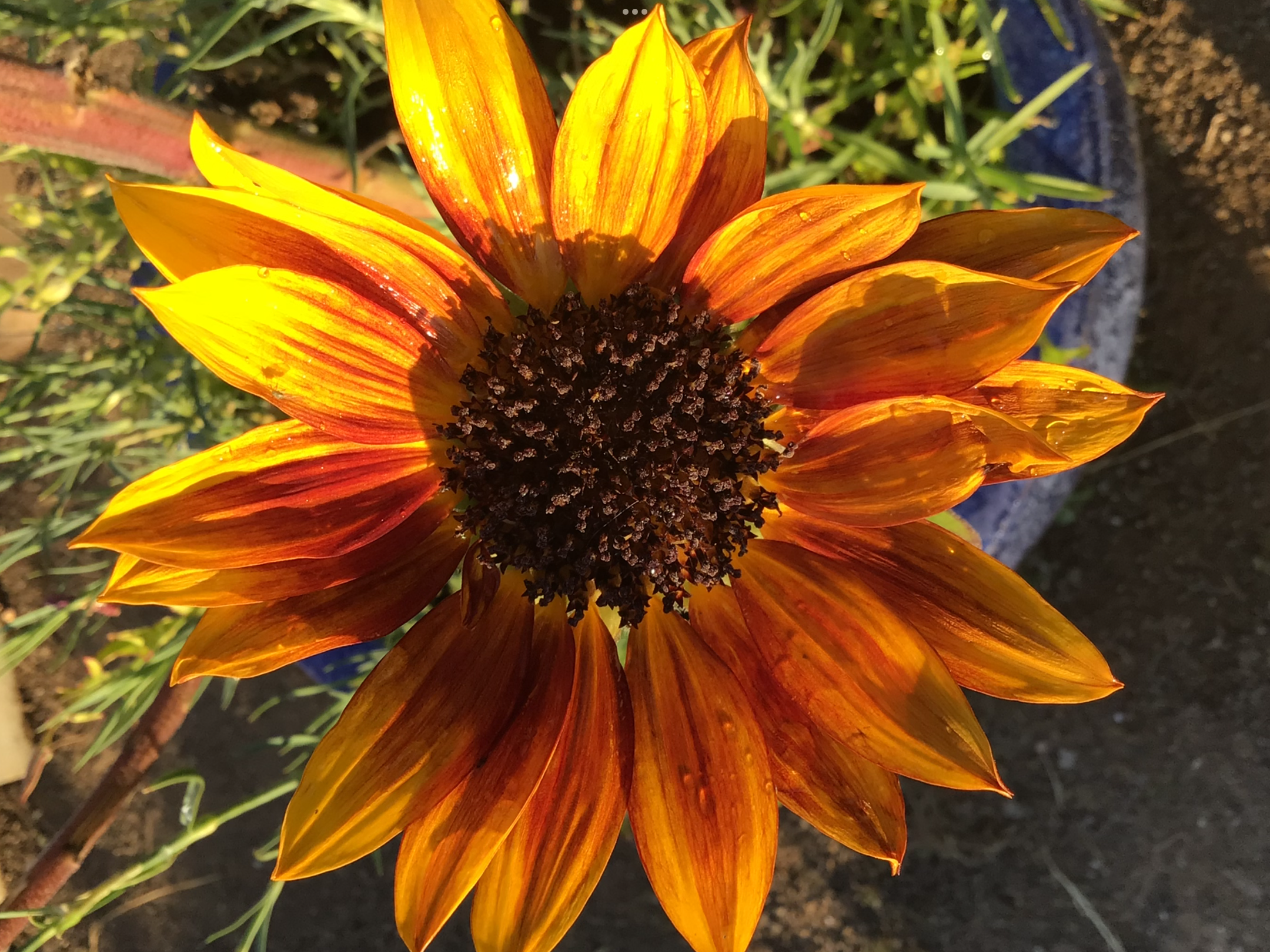 A stunning heirloom sunflower known for its fiery blend of red, bronze, orange and golden petals. Multiple blooms per plant. Home-grown and hand-packed by FlowerLadi in South Australia.